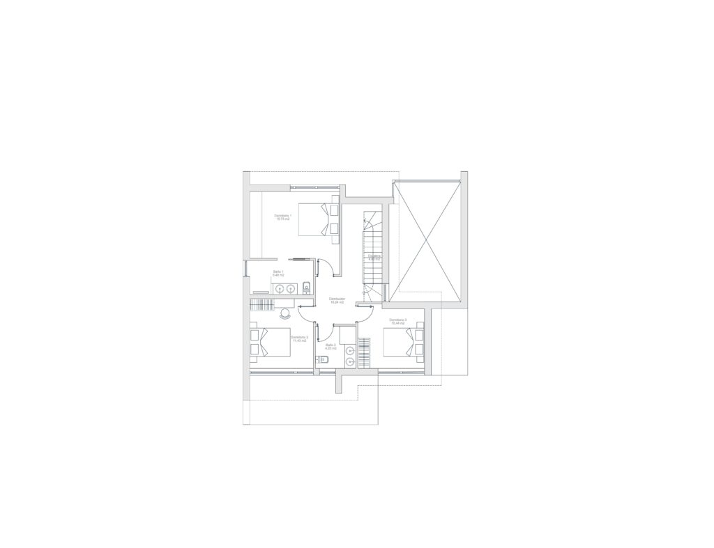 bietet das Erdgeschoss ein großzügiges Schlafzimmer mit Badezimmer und direktem Zugang zur Poolterrasse über große Schiebetüren.