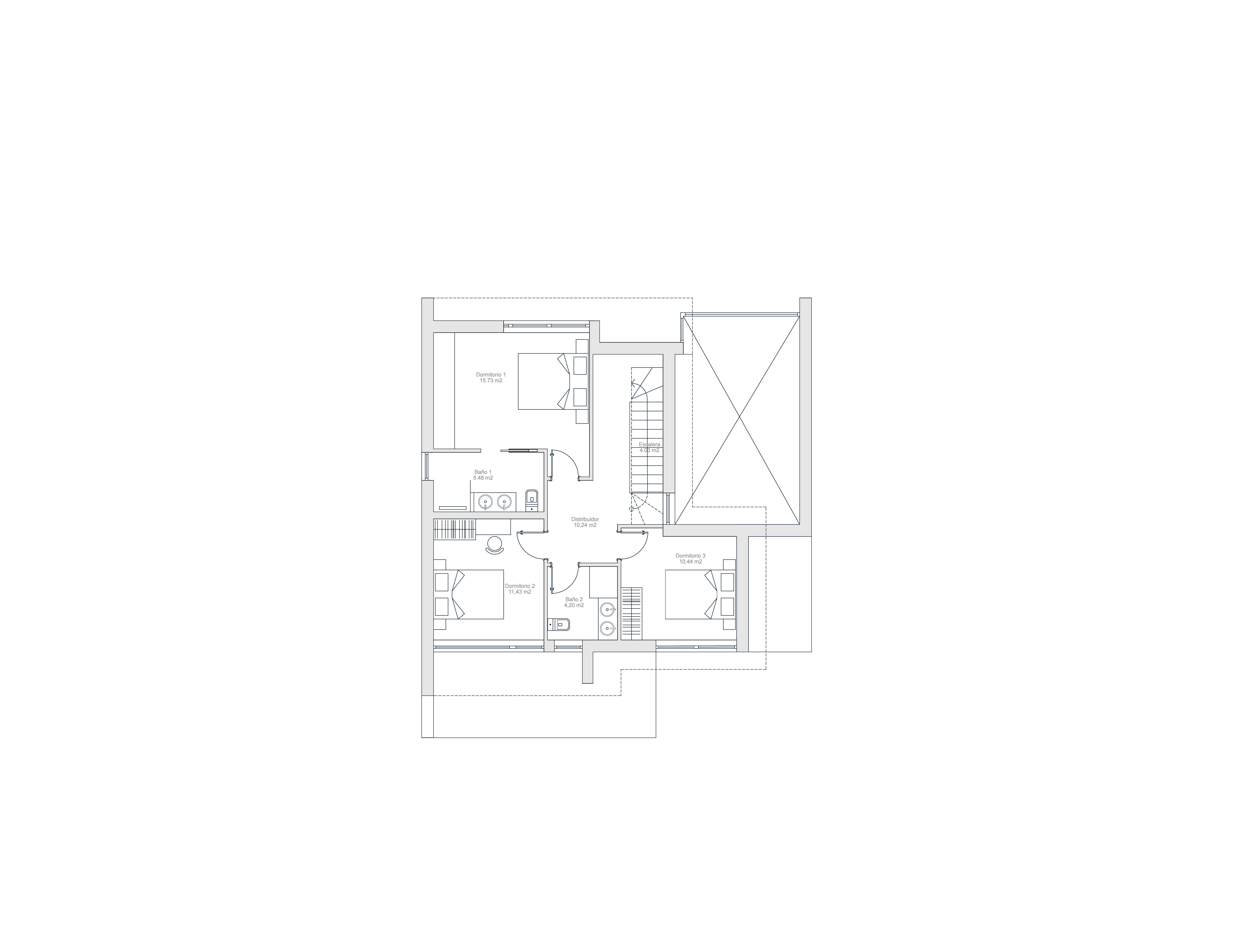 bietet das Erdgeschoss ein großzügiges Schlafzimmer mit Badezimmer und direktem Zugang zur Poolterrasse über große Schiebetüren.